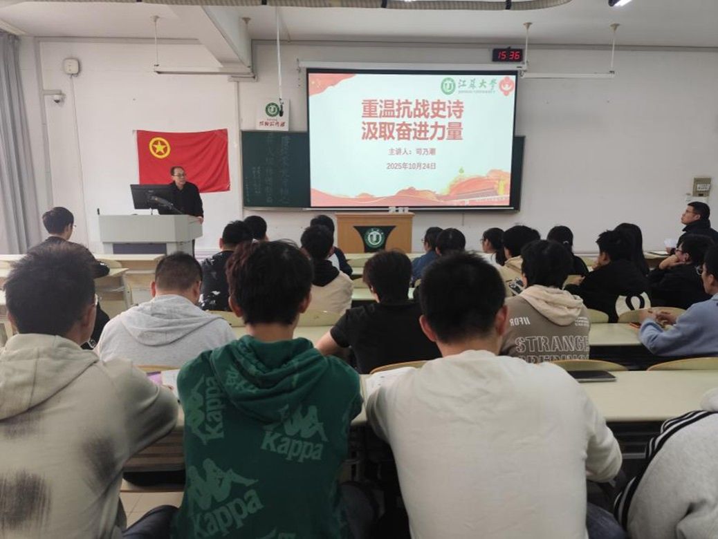 抗日战争是中国近代史上一段波澜壮阔的历史,无数革命先烈用生命铸就了伟大的抗战精神。为了让同学们铭记历史、缅怀先烈,传承和弘扬抗战精神,增强民族自豪感和责任感,10月24日15:30,伟德victor1946关工委于京江楼3203开展“重温抗战史诗,汲取奋进力量”主题讲座,讲座由院关工委委员司乃潮主讲,成型2301、成型2403团支部全体同学参加本次活动。