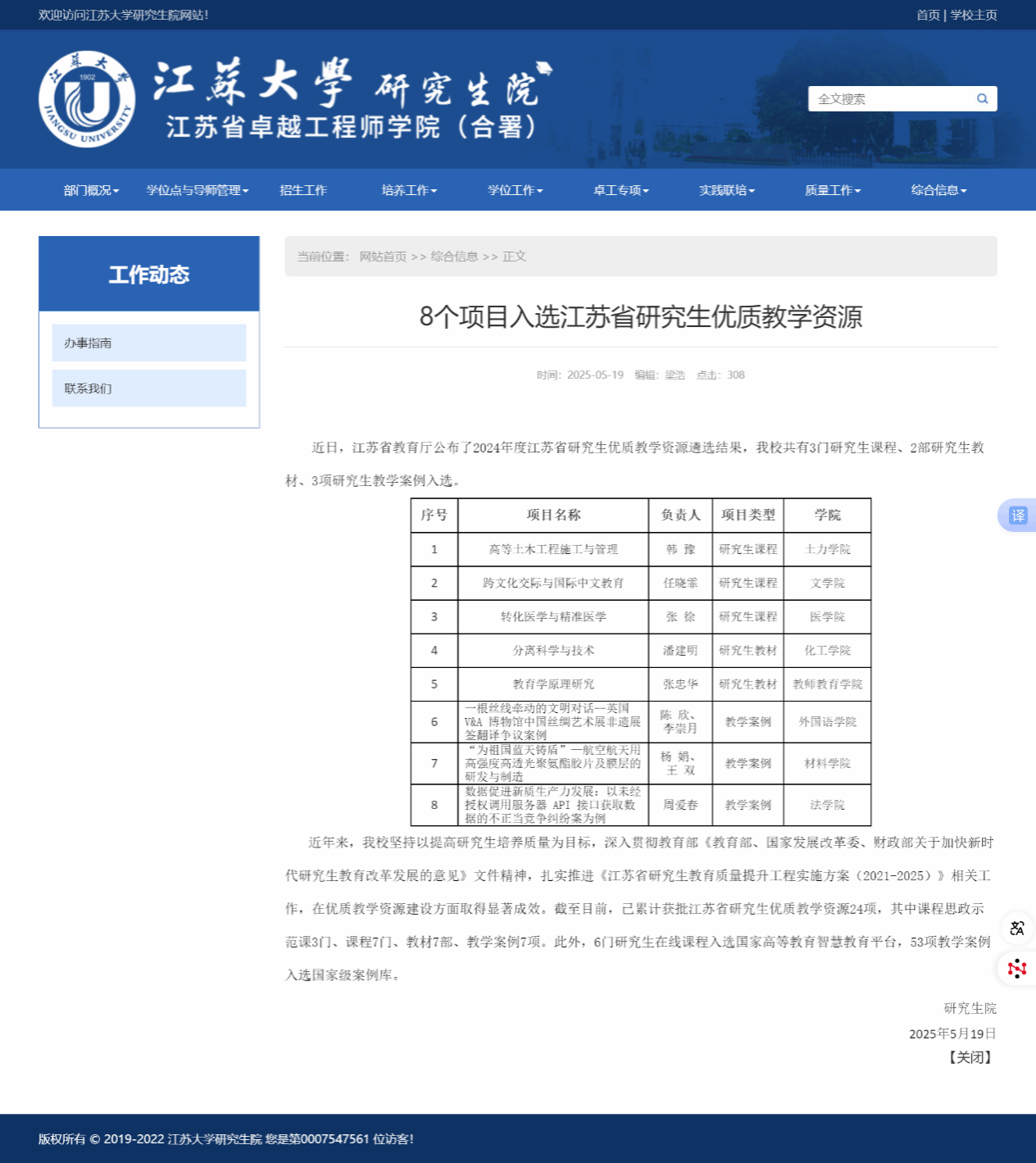 江苏省教育厅公布2024年江苏省研究生优质教学资源遴选结果,我院教学案例“为祖国蓝天铸盾”成功入选。这一成果是学院深化研究生教学资源建设的重要体现,伟德victor1946将以此为契机,持续推进研究生教学资源优化,助力研究生教育质量提升。